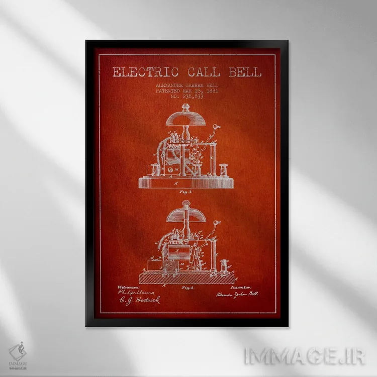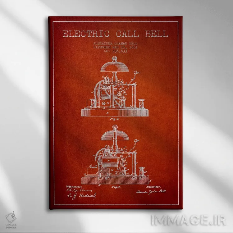 تابلو نقشهٔ اختراع زنگ الکس برقی (قرمز) اثر پیکسل کهنه (استودیو/نام هنری)