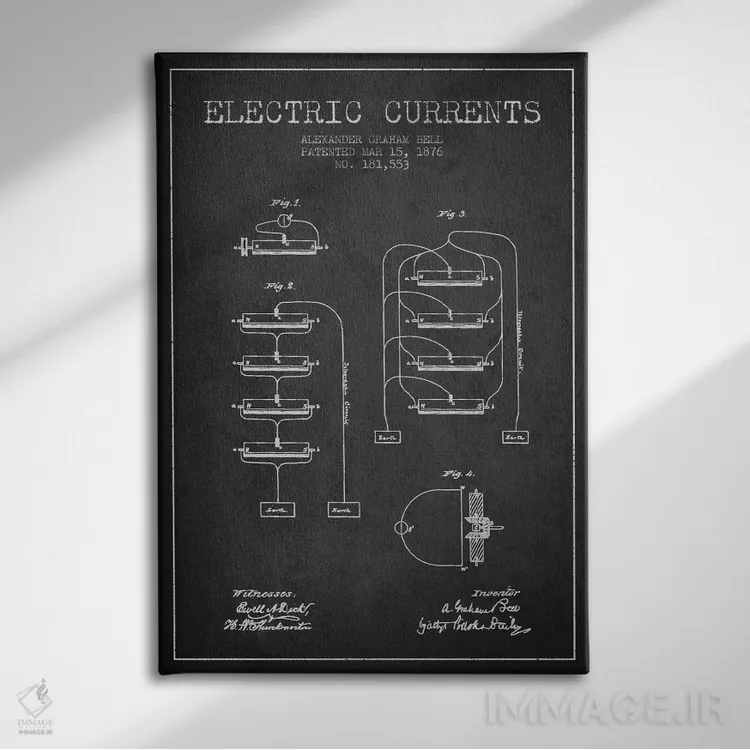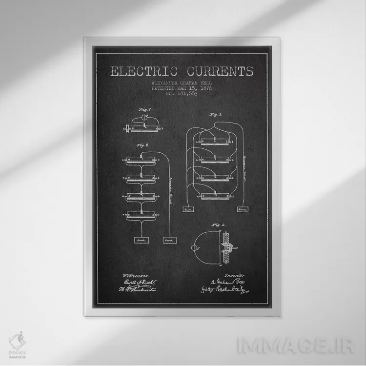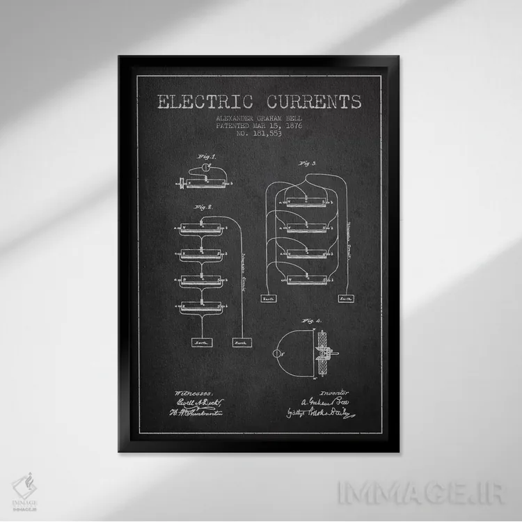 تابلو نقشهٔ اختراع جریانهای الکتریکی (ذغالی) اثر پیکسل کهنه (استودیو/نام هنری)