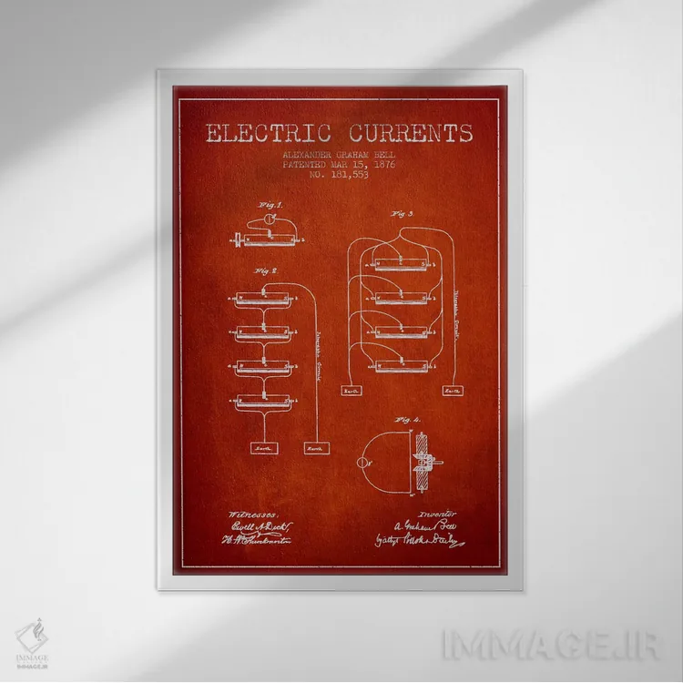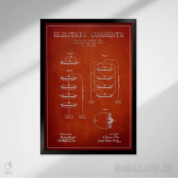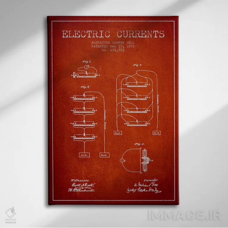 تابلو نقشهٔ اختراع جریانهای الکتریکی (قرمز) اثر پیکسل کهنه (استودیو/نام هنری)