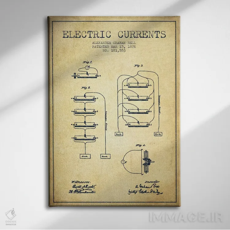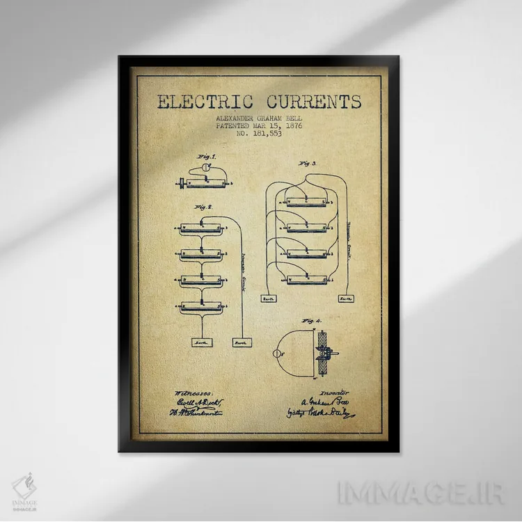 تابلو نقشهٔ اختراع جریانهای الکتریکی (قدیمی) اثر پیکسل کهنه (استودیو/نام هنری)