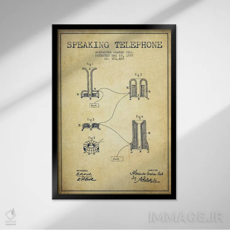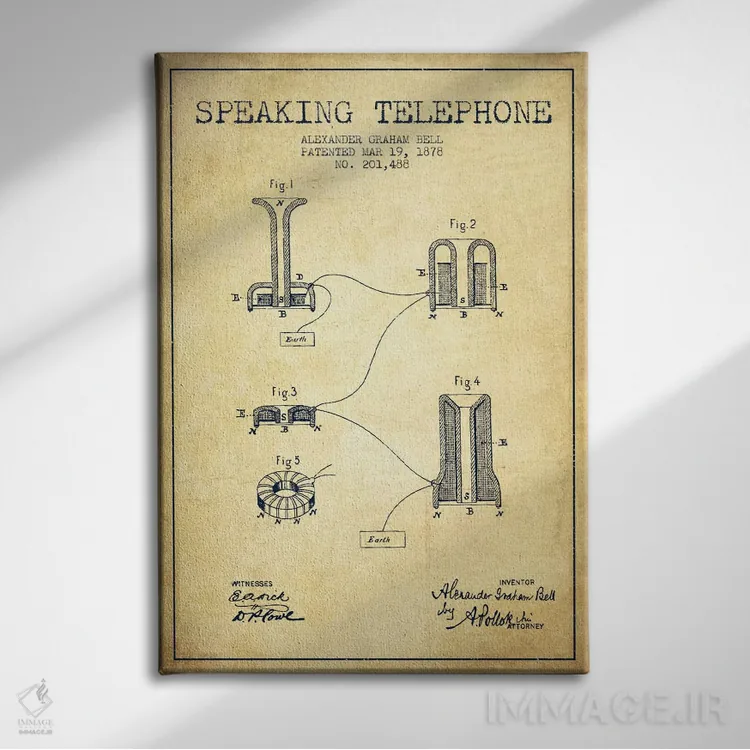 تابلو نقشهٔ اختراع تلفن گویا (قدیمی) اثر پیکسل کهنه (استودیو/نام هنری)