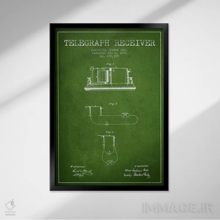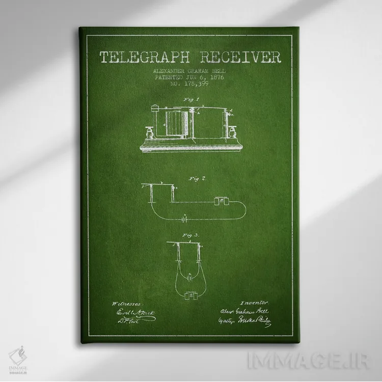 «نقشهٔ اختراع گیرنده تلگراف (سبز)» اثرِ «پیکسل کهنه (استودیو/نام هنری)» یک انتخاب مطمئن و هماهنگپذیر برای کسانیست که میخواهند فضا شخصیت و داستان داشته باشد.