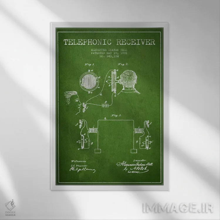 «نقشهٔ اختراع گیرنده تلفنی (سبز)» اثرِ «پیکسل کهنه (استودیو/نام هنری)» اگر به جزئیات کلاسیک و حس قدیمیِ شیک علاقه دارید، گزینهی خوبیست.