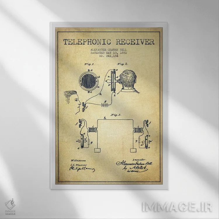 تابلو نقشهٔ اختراع گیرنده تلفنی (قدیمی) اثر پیکسل کهنه (استودیو/نام هنری)