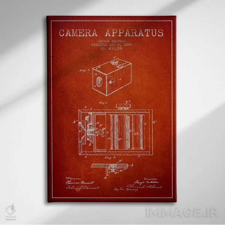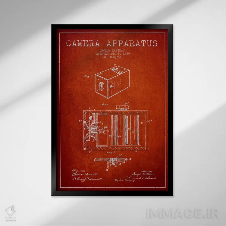 اگر دکور شما کلاسیک/رترو است، «نقشهٔ اختراع دوربین (قرمز)» اثرِ «پیکسل کهنه (استودیو/نام هنری)» با سبک هنری کاملاًً مینشیند.