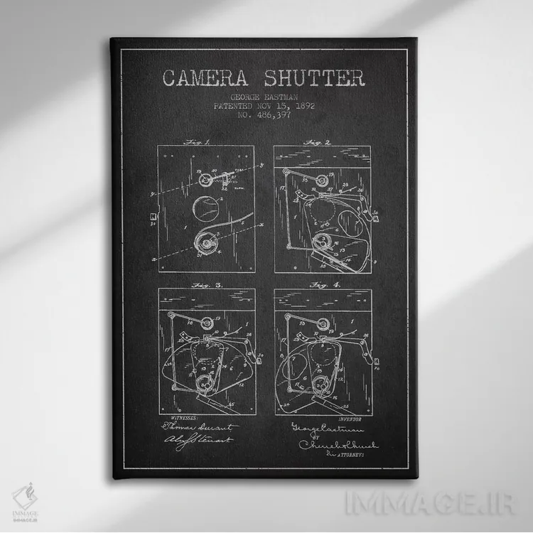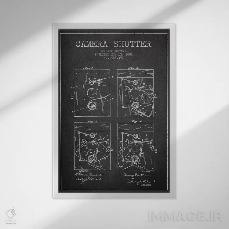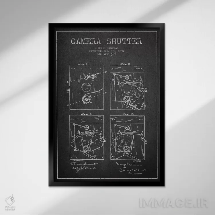 تابلو نقشهٔ اختراع شاتر دوربین (ذغالی) اثر پیکسل کهنه (استودیو/نام هنری)