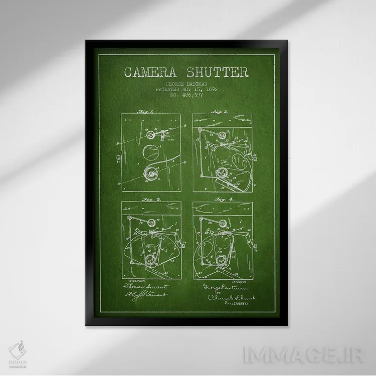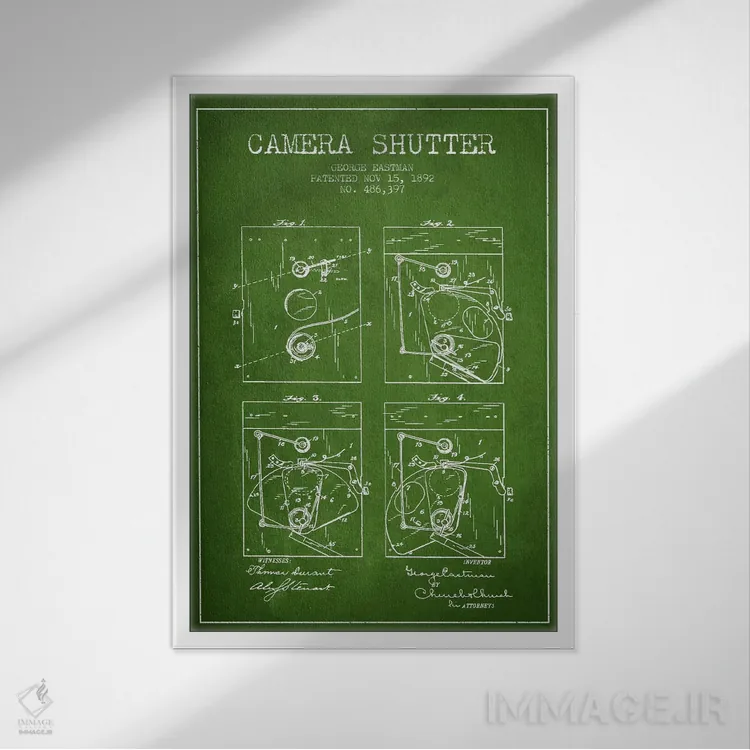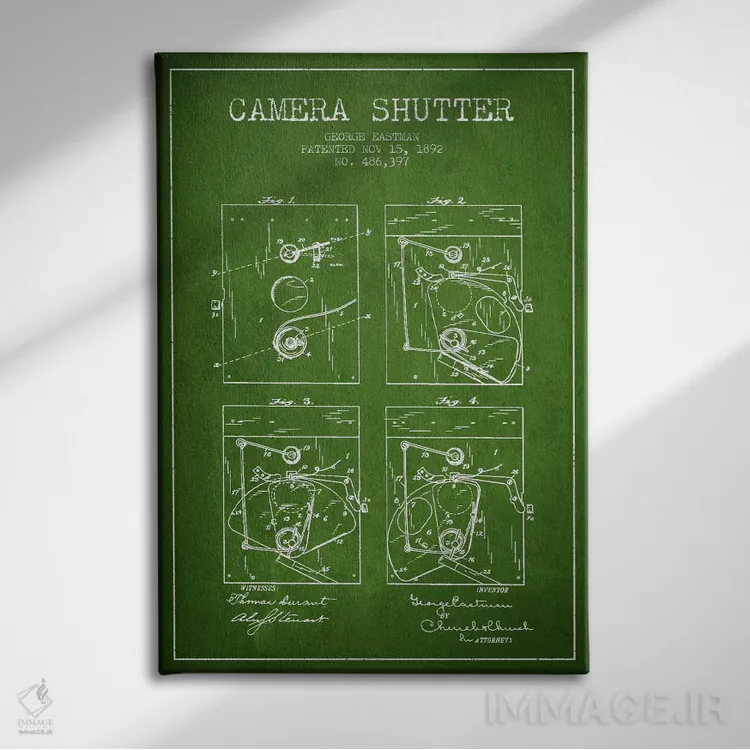 تابلو نقشهٔ اختراع شاتر دوربین (سبز) اثر پیکسل کهنه (استودیو/نام هنری)