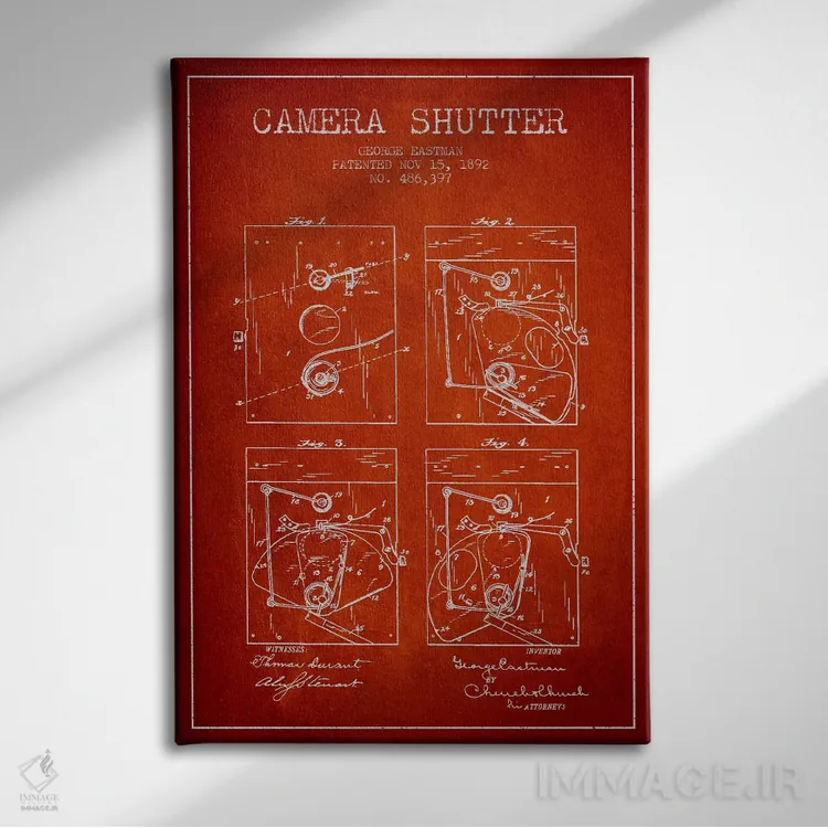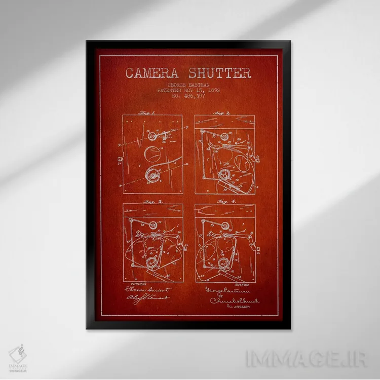 تابلو نقشهٔ اختراع شاتر دوربین (قرمز) اثر پیکسل کهنه (استودیو/نام هنری) - نمای پرسپکتیو محصول