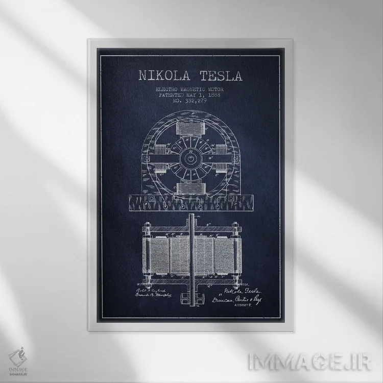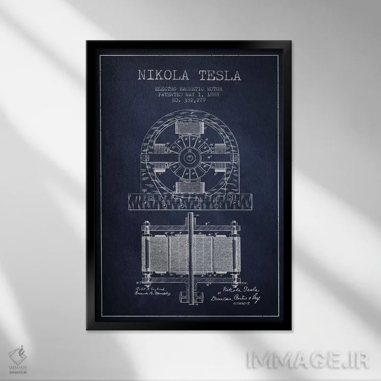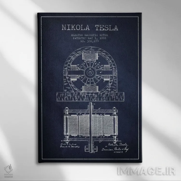تابلو نقشهٔ اختراع الکتروموتور (سرمهای) اثر پیکسل کهنه (استودیو/نام هنری)