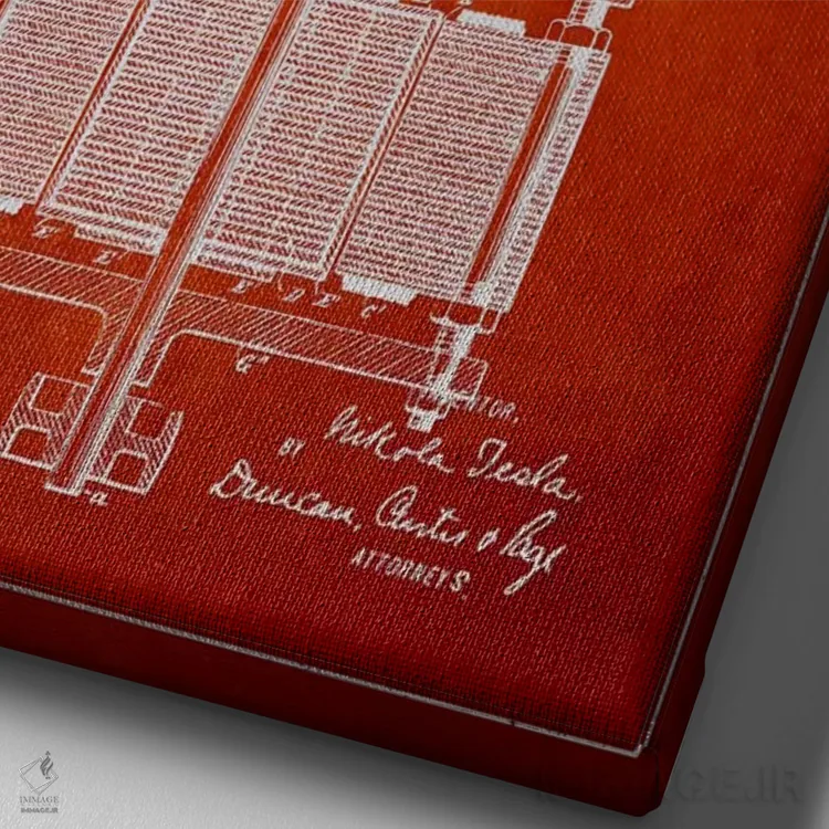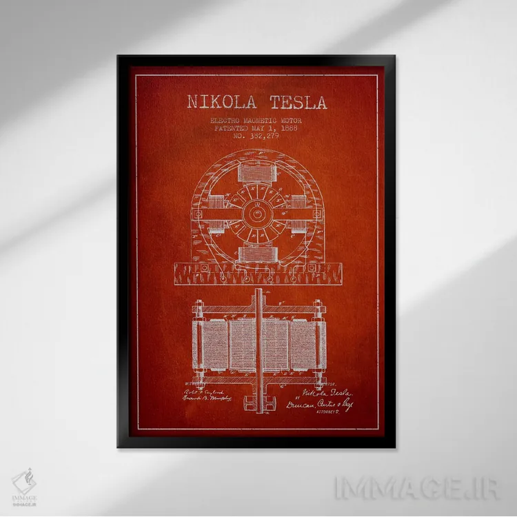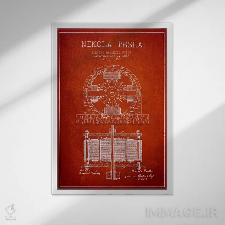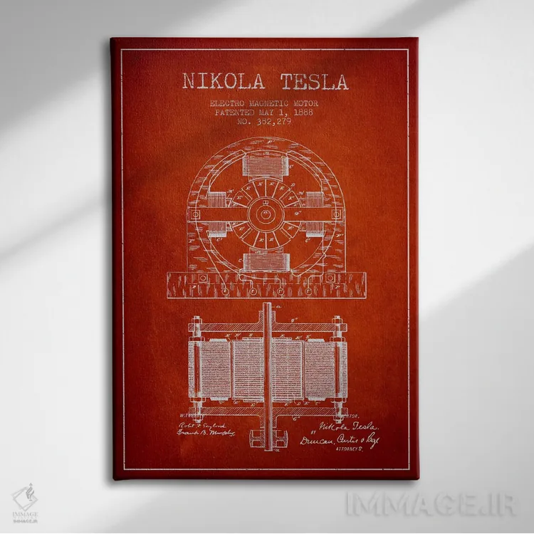 تابلو نقشهٔ اختراع الکتروموتور (قرمز) اثر پیکسل کهنه (استودیو/نام هنری)