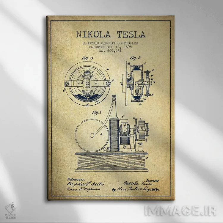 تابلو نقشهٔ اختراع مدار الکتریکی (قدیمی) اثر پیکسل کهنه (استودیو/نام هنری)