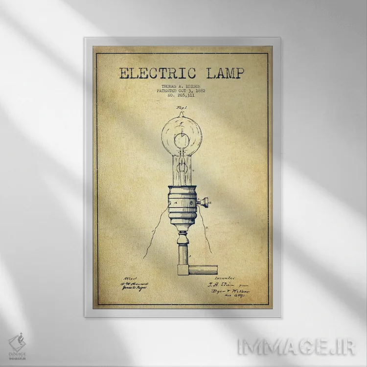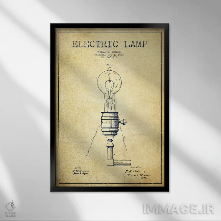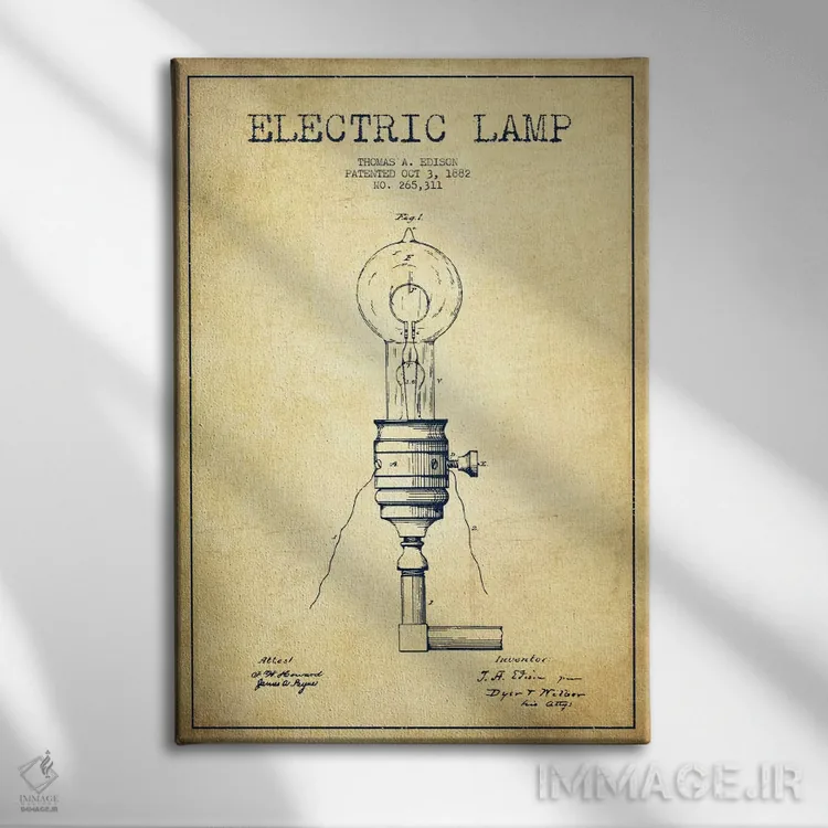 تابلو نقشهٔ اختراع چراغ برقی (قدیمی) اثر پیکسل کهنه (استودیو/نام هنری)