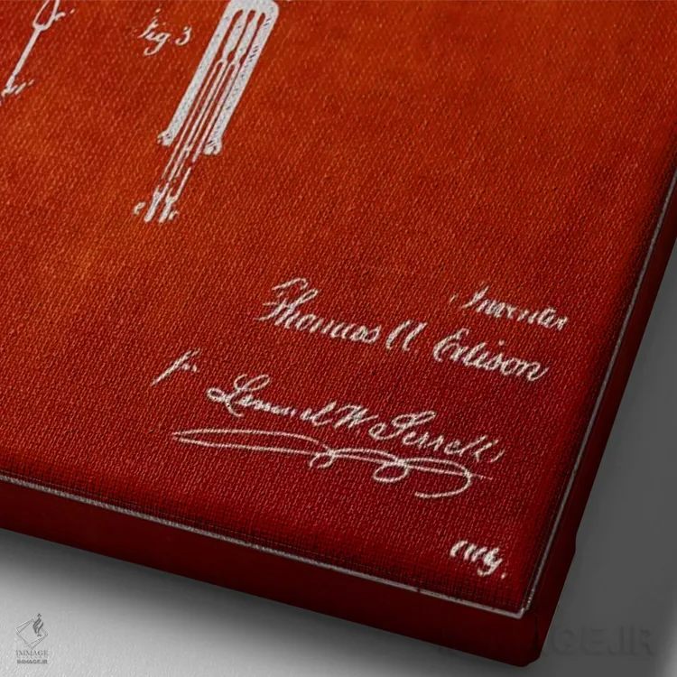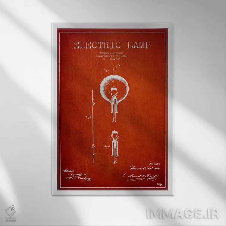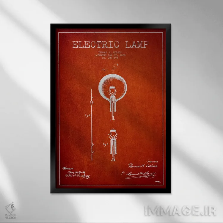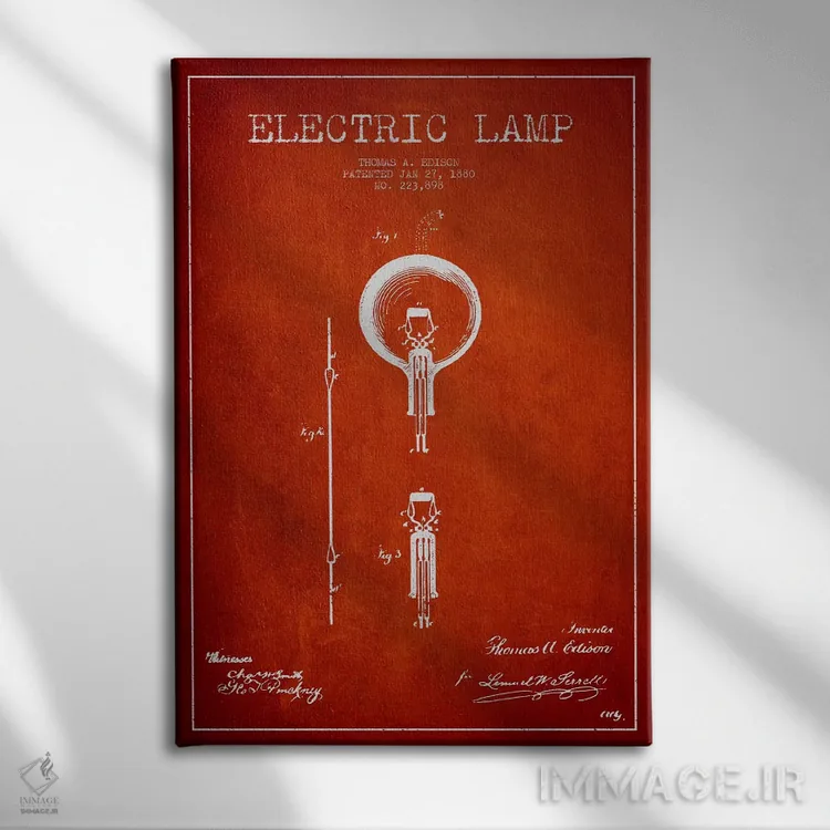 تابلو نقشهٔ اختراع چراغ برقی (قرمز) اثر پیکسل کهنه (استودیو/نام هنری)