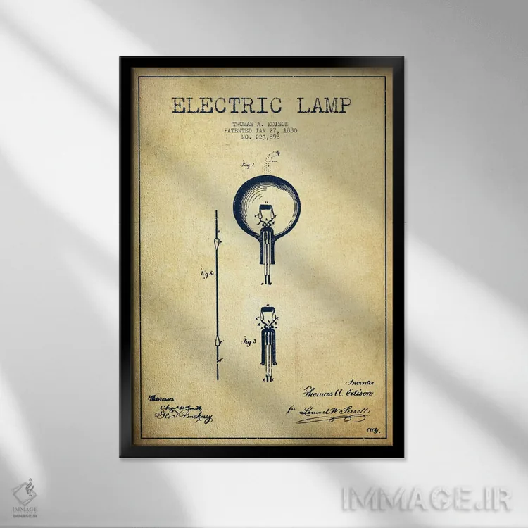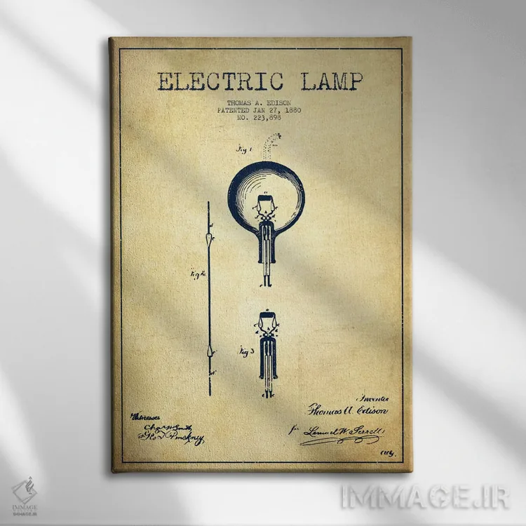 تابلو نقشهٔ اختراع چراغ برقی (قدیمی) اثر پیکسل کهنه (استودیو/نام هنری)
