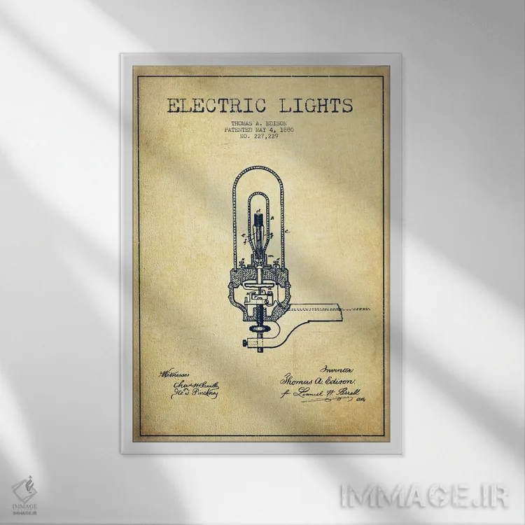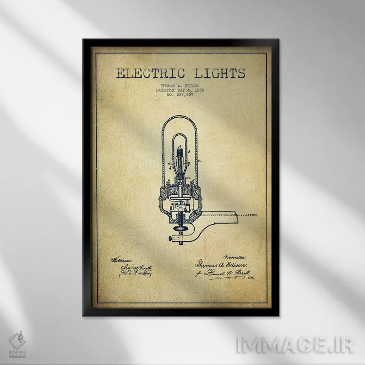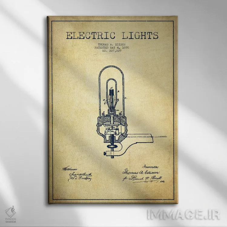 تابلو نقشهٔ اختراع چراغ‌های برقی (قدیمی) اثر پیکسل کهنه (استودیو/نام هنری) - نمای پرسپکتیو محصول