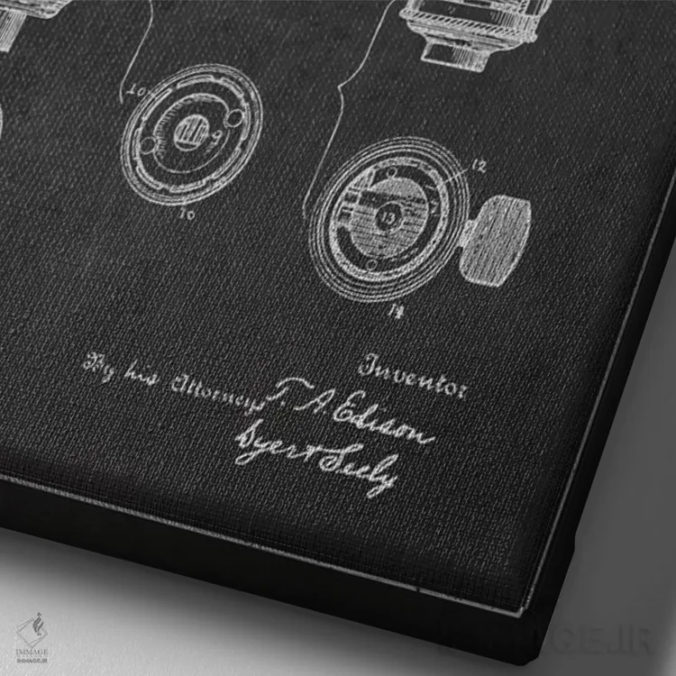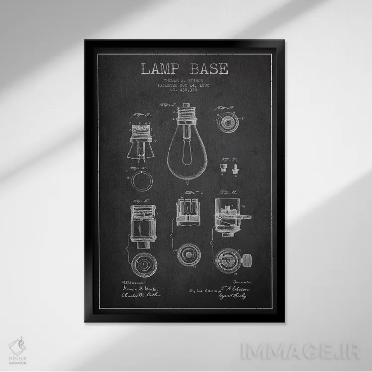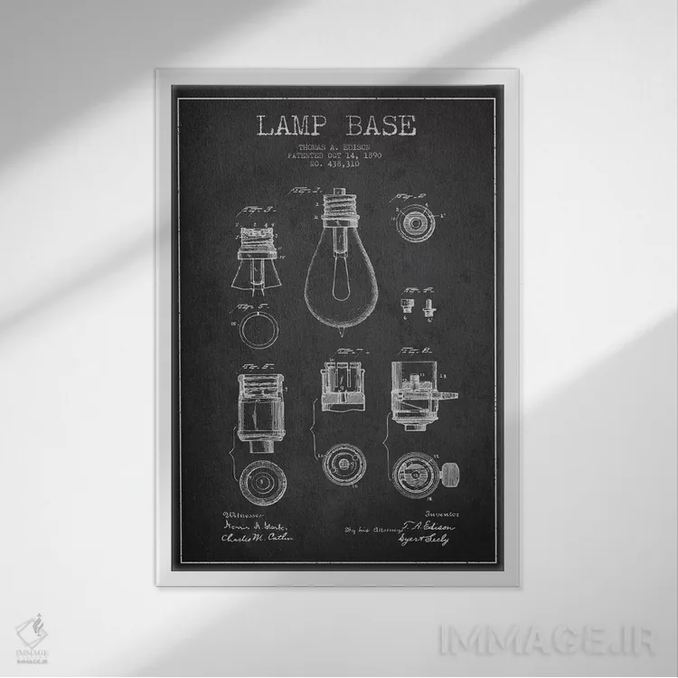 تابلو نقشهٔ اختراع پایه لامپ (ذغالی) اثر پیکسل کهنه (استودیو/نام هنری)