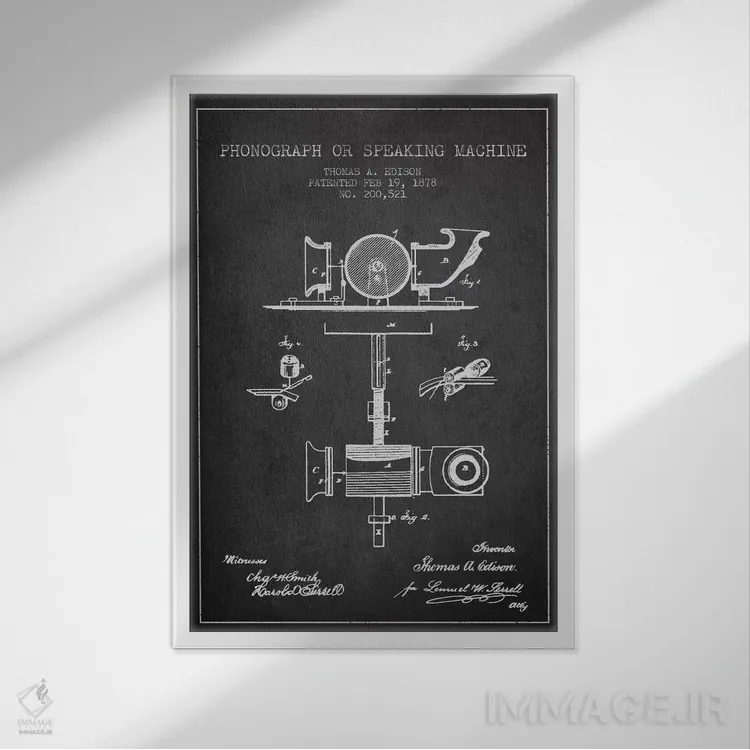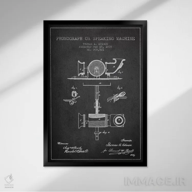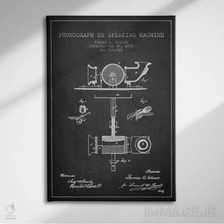 تابلو نقشهٔ اختراع گرامافون (ذغالی) اثر پیکسل کهنه (استودیو/نام هنری)