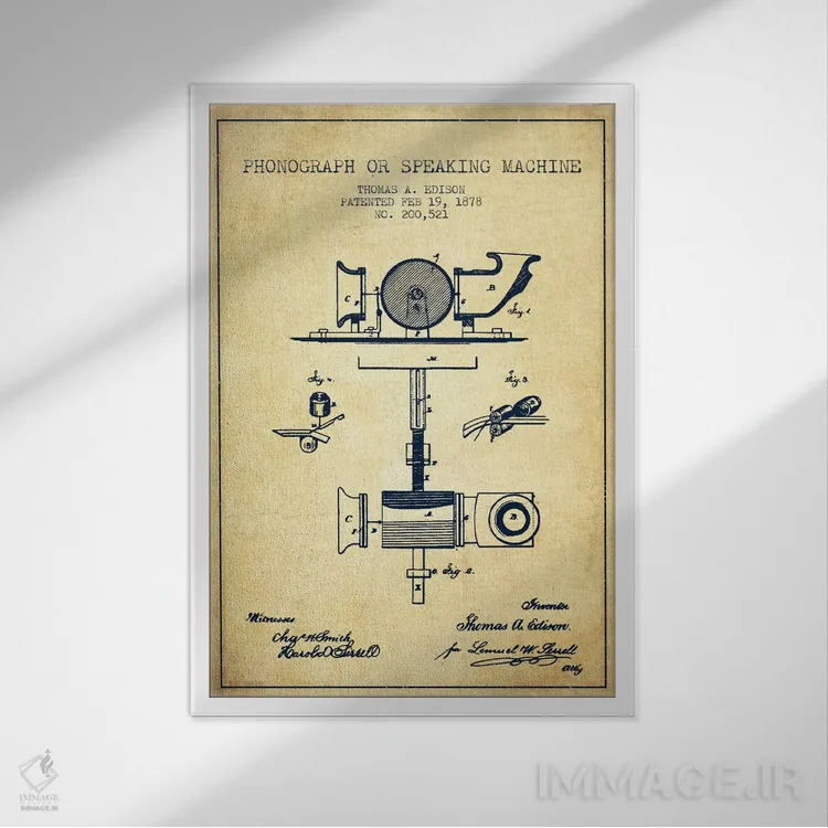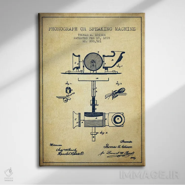 تابلو دکوراتیو نقشه اختراع گرامافون اثر پیکسل کهنه