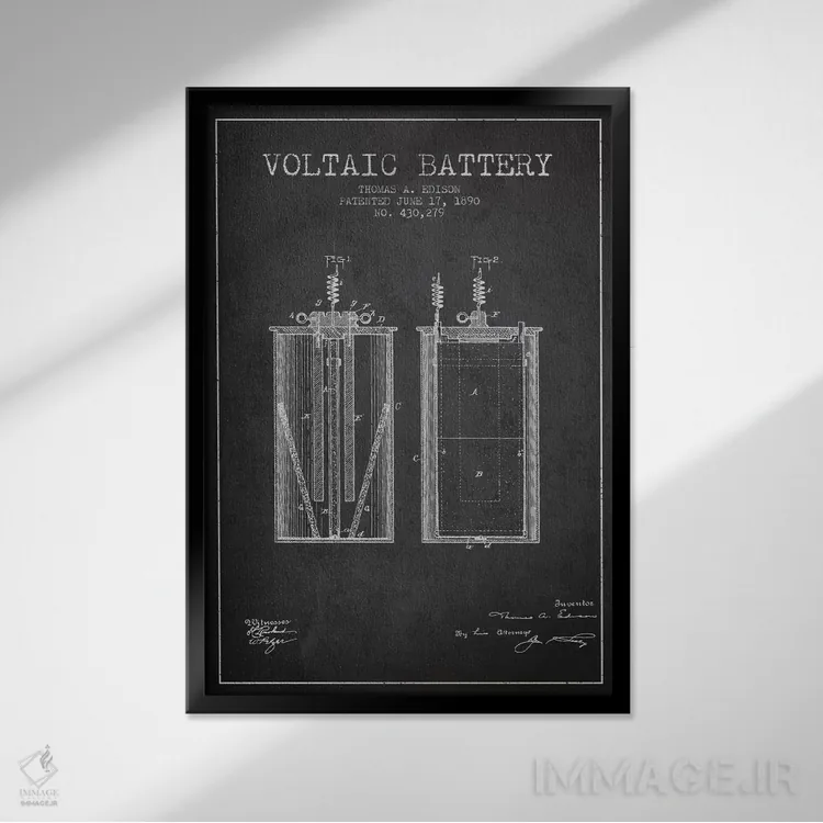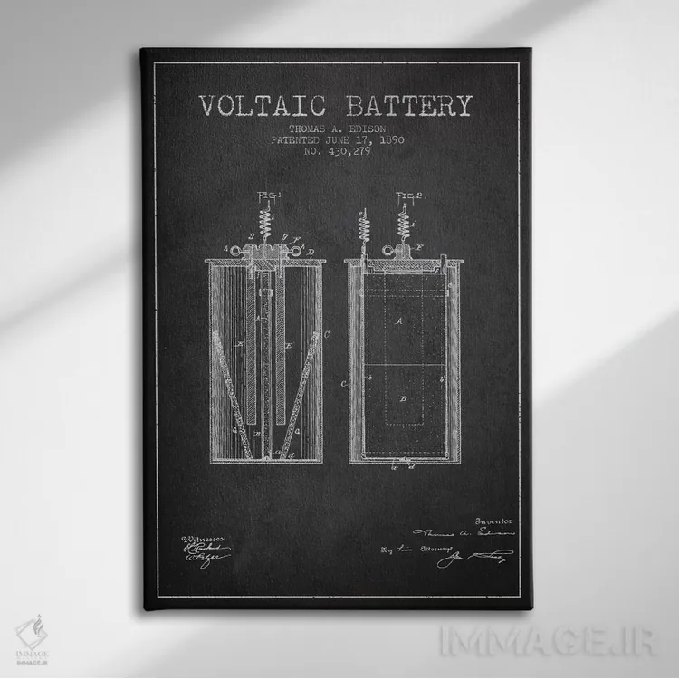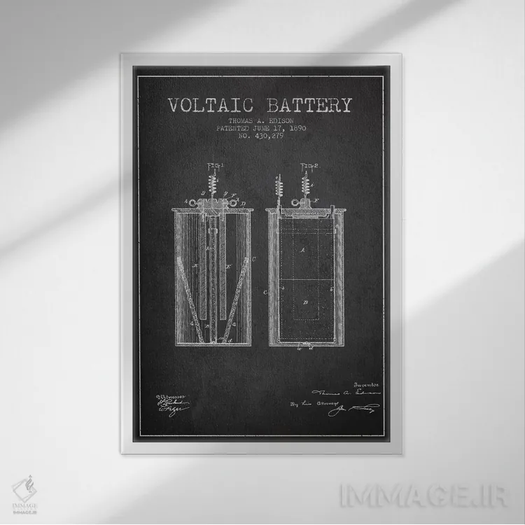 تابلو نقشهٔ اختراع باتری ولتایی (ذغالی) اثر پیکسل کهنه (استودیو/نام هنری)