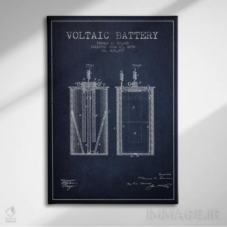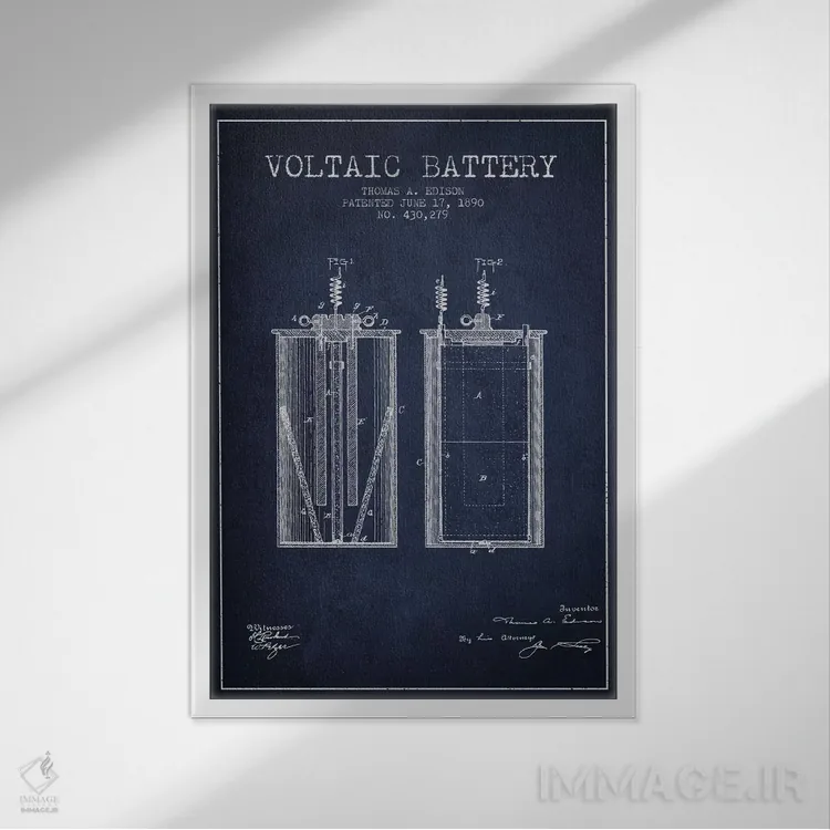 تابلو نقشهٔ اختراع باتری ولتایی (سرمهای) اثر پیکسل کهنه (استودیو/نام هنری)
