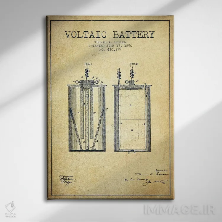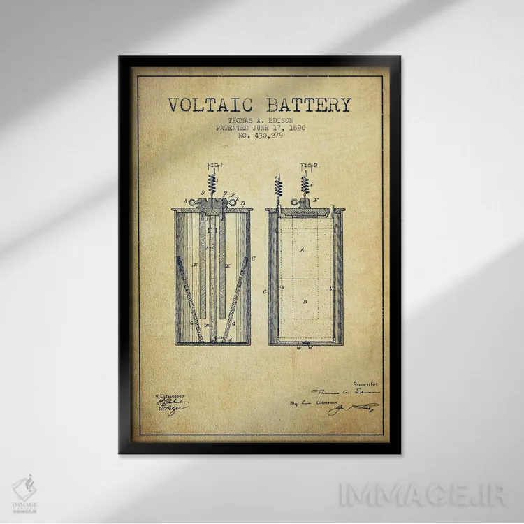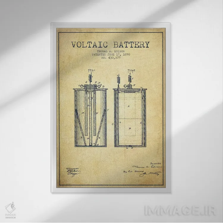 تابلو نقشهٔ اختراع باتری ولتایی (قدیمی) اثر پیکسل کهنه (استودیو/نام هنری)