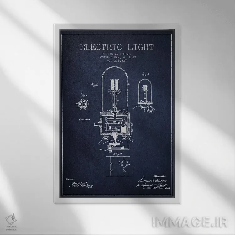 تابلو نقشهٔ اختراع چراغ الکتریکی (سرمهای) اثر پیکسل کهنه (استودیو/نام هنری)