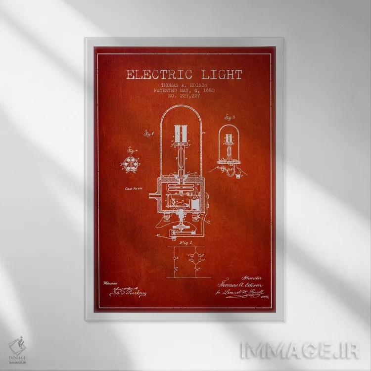 تابلو نقشهٔ اختراع چراغ الکتریکی (قرمز) اثر پیکسل کهنه (استودیو/نام هنری)