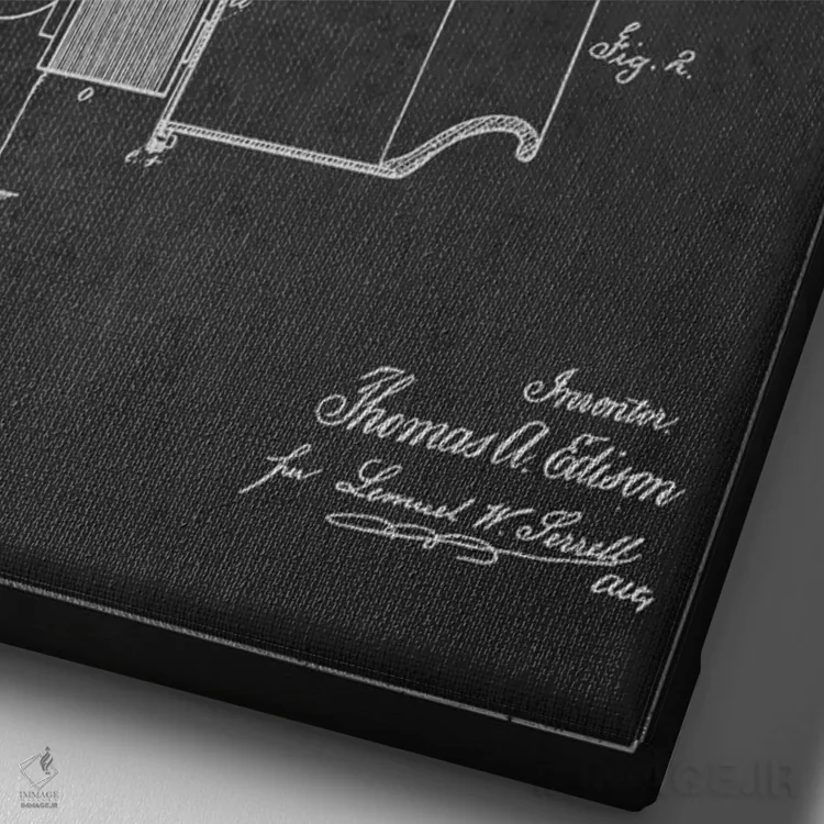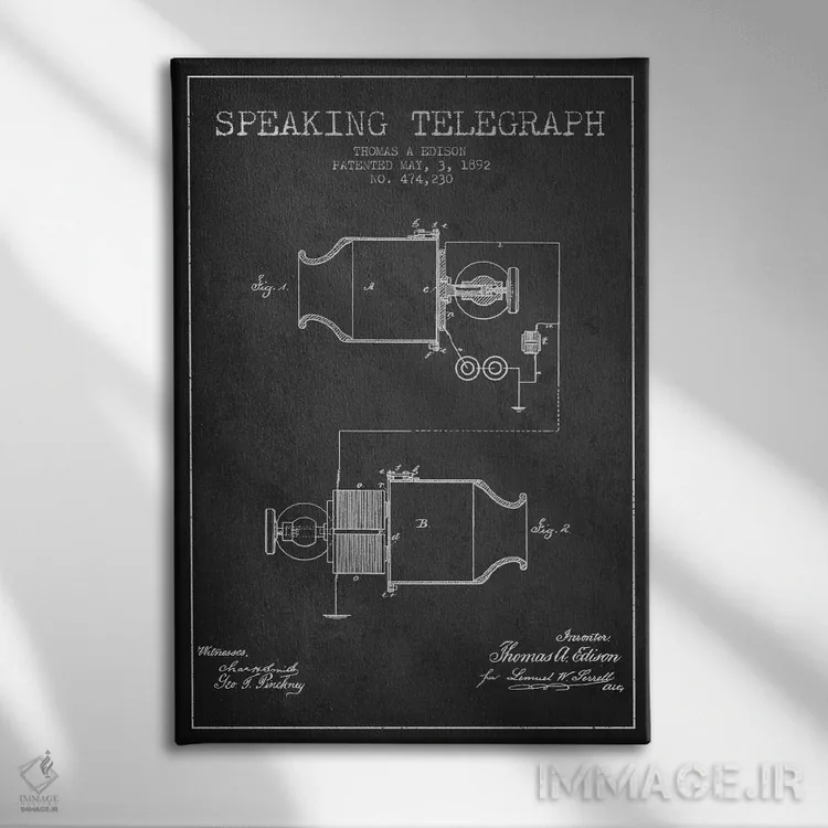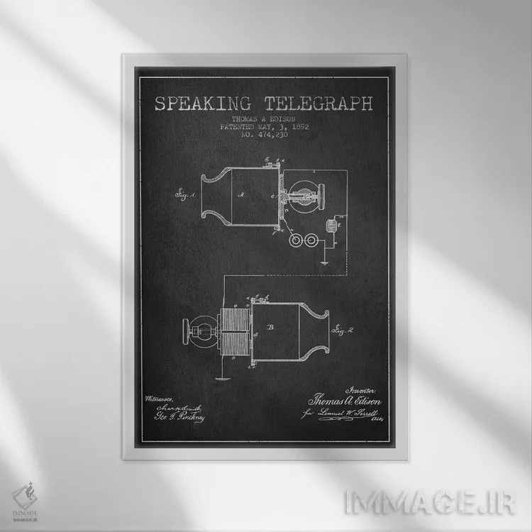 تابلو نقشهٔ اختراع تلفن سخنگو (ذغالی) اثر پیکسل کهنه (استودیو/نام هنری)