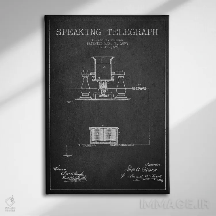 تابلو طرح ثبت اختراع تلفن سخنگو (طرح ذغالی) اثر پیکسل کهنه (استودیو/نام هنری)
