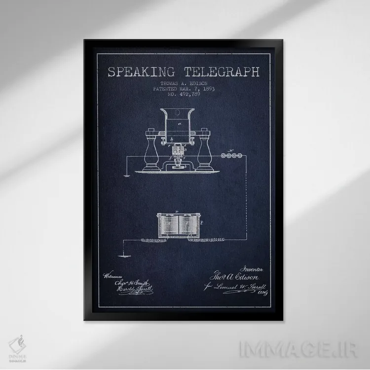 تابلو طرح ثبت اختراع تلفن سخنگو ۲ (آبی نیروی دریایی) اثر پیکسل کهنه (استودیو/نام هنری) - نمای قاب‌دار مشکی