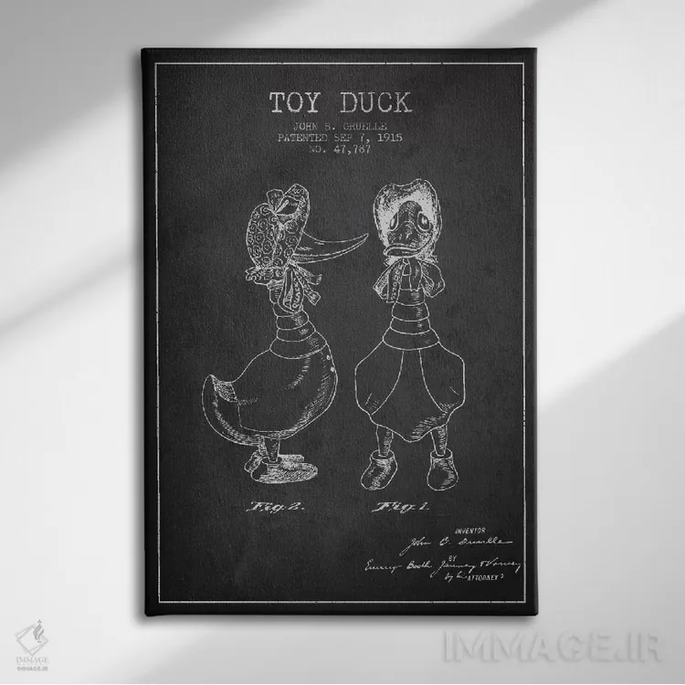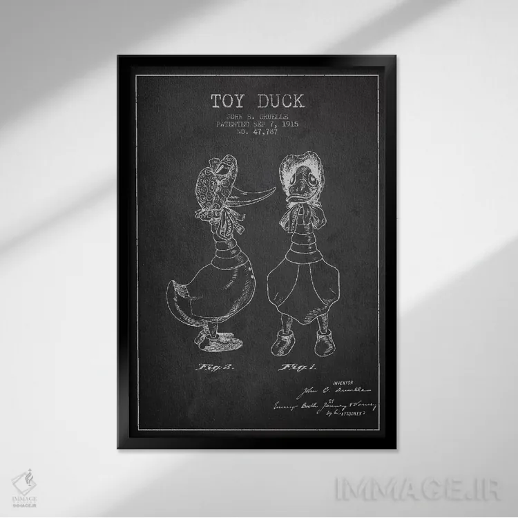 اگر دکور شما کلاسیک/رترو است، «طرح ثبت اختراع اردک ماده (تیره)» اثرِ «پیکسل کهنه (استودیو/نام هنری)» با سبک هنری کاملاًً مینشیند.