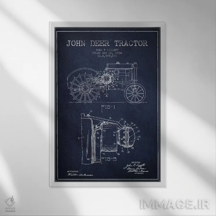تابلو دکوراتیوِ «طرح ثبت اختراع جان دیر ۴ (آبی نیروی دریایی)»؛ مناسب برای فضاهایی با چوب تیره، چراغهای گرم و اکسسوریهای کلاسیک اثرِ «پیکسل کهنه (استودیو/نام هنری)».