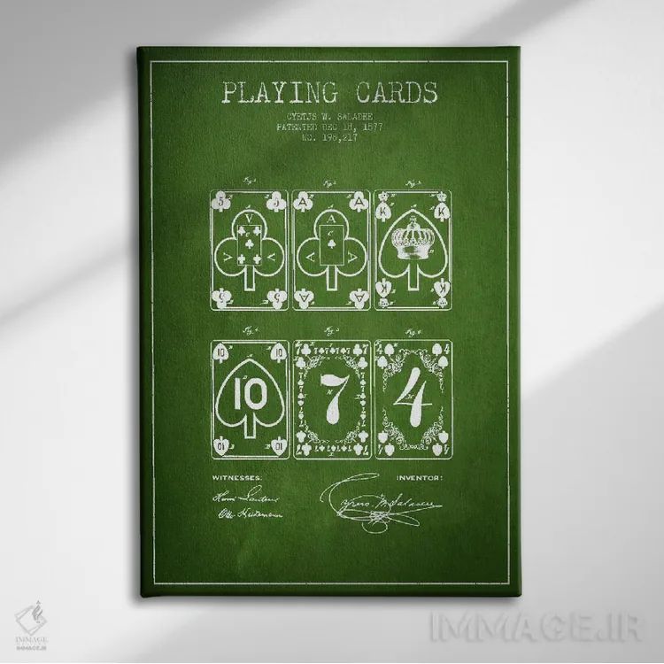 «طرح ثبت اختراع کارتهای سالادی (سبز)» اثرِ «پیکسل کهنه (استودیو/نام هنری)» برای فضاهای گرم و صمیمی مناسب است؛ بهخصوص کنار چوب تیره و نور زرد.