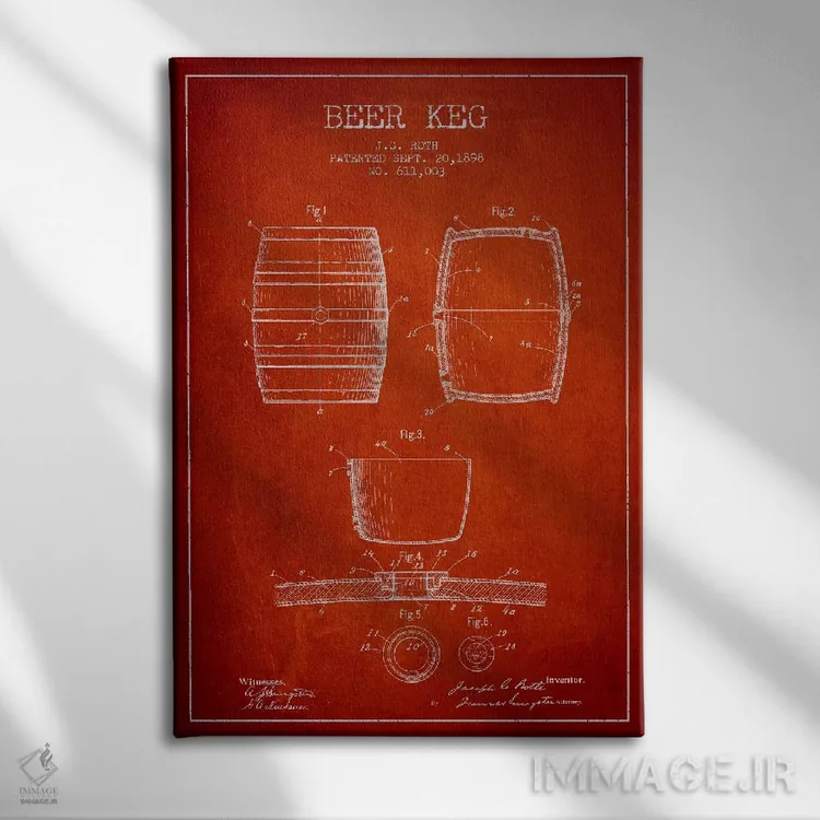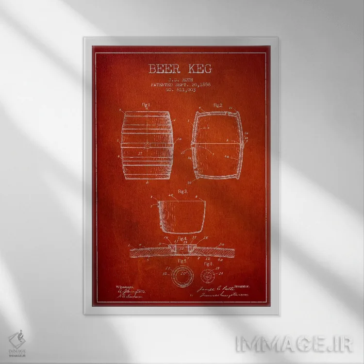 «طرح ثبت اختراع بشکه (قرمز)» اثرِ «پیکسل کهنه (استودیو/نام هنری)» با حالوهوای هنری، حس نوستالژیِ کنترلشدهای به فضا میدهد؛ مناسب برای چیدمانهای رترو و کلاسیک.