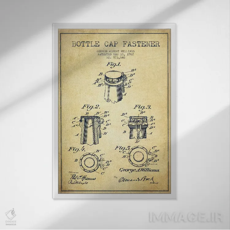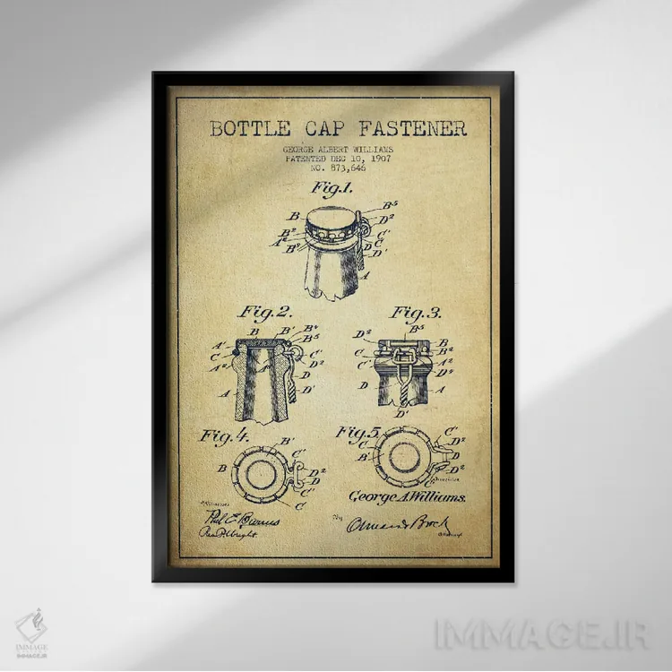 تابلو طرح ثبت اختراع قفل درب بطری (قدیمی) اثر پیکسل کهنه (استودیو/نام هنری)