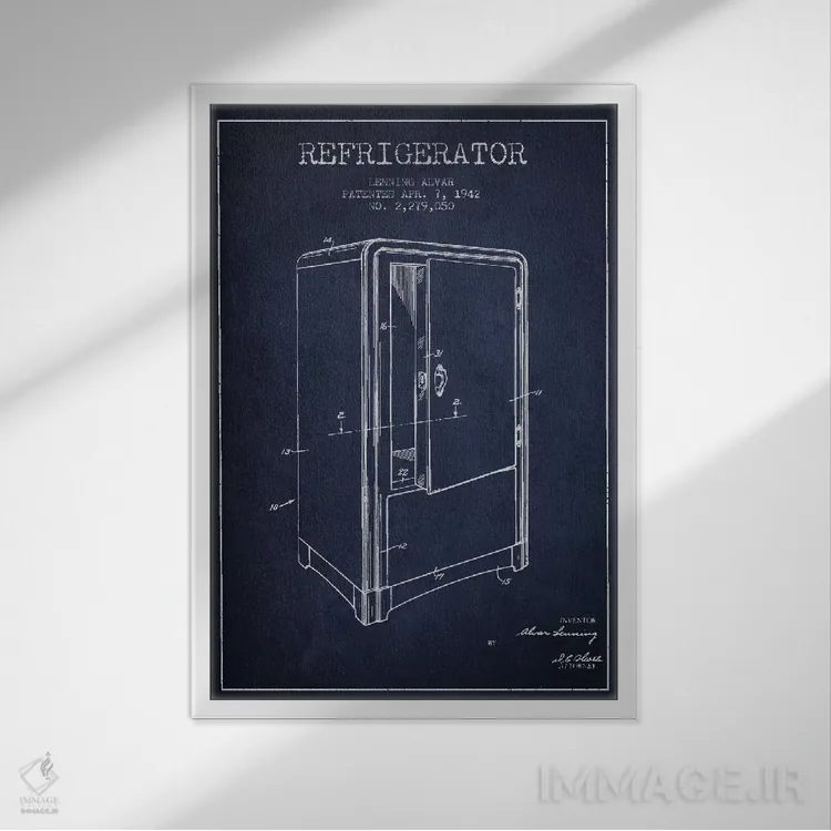 تابلو طرح ثبت اختراع یخچال (آبی نیروی دریایی) اثر پیکسل کهنه (استودیو/نام هنری)