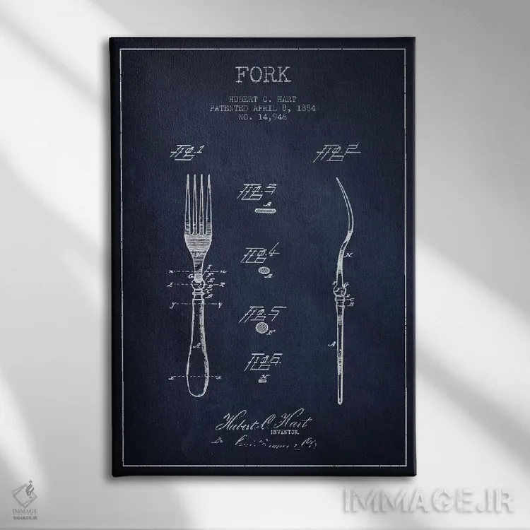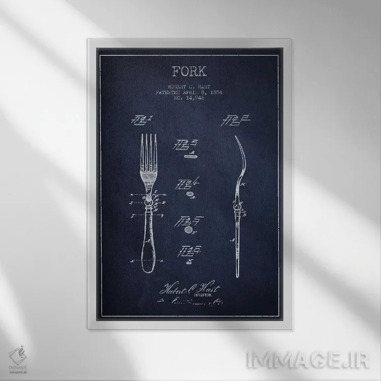 تابلو طرح ثبت اختراع چنگال (آبی نیروی دریایی) اثر پیکسل کهنه (استودیو/نام هنری)