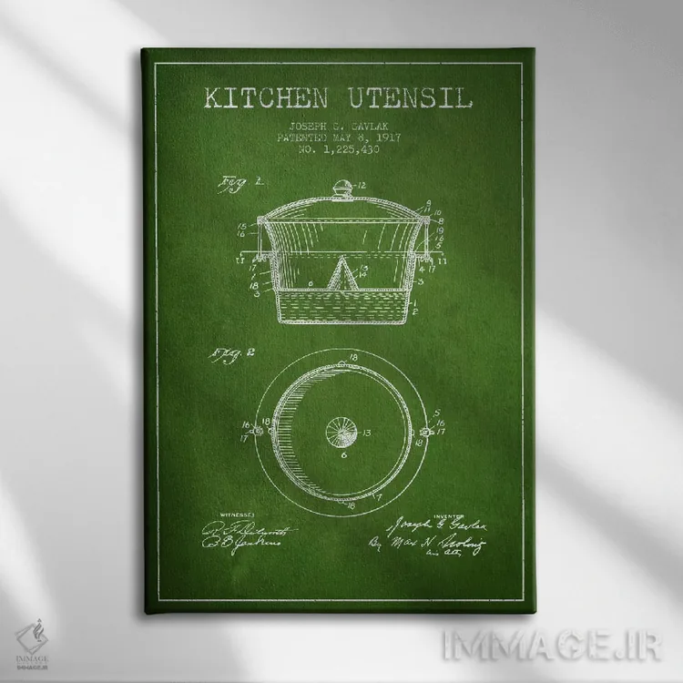 تابلو طرح ثبت اختراع لوازم آشپزخانه (سبز) اثر پیکسل کهنه (استودیو/نام هنری)