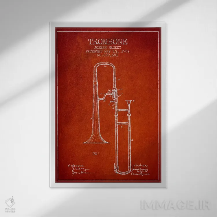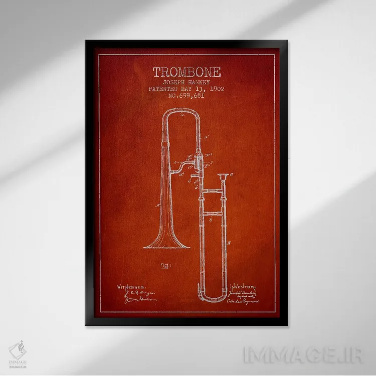 تابلو طرح ثبت اختراع ترومبون (قرمز) اثر پیکسل کهنه (استودیو/نام هنری)