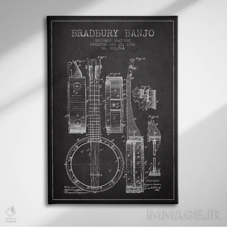 تابلو طرح ثبت اختراع بانجو (زغالی) اثر پیکسل کهنه (استودیو/نام هنری) - نمای پرسپکتیو محصول