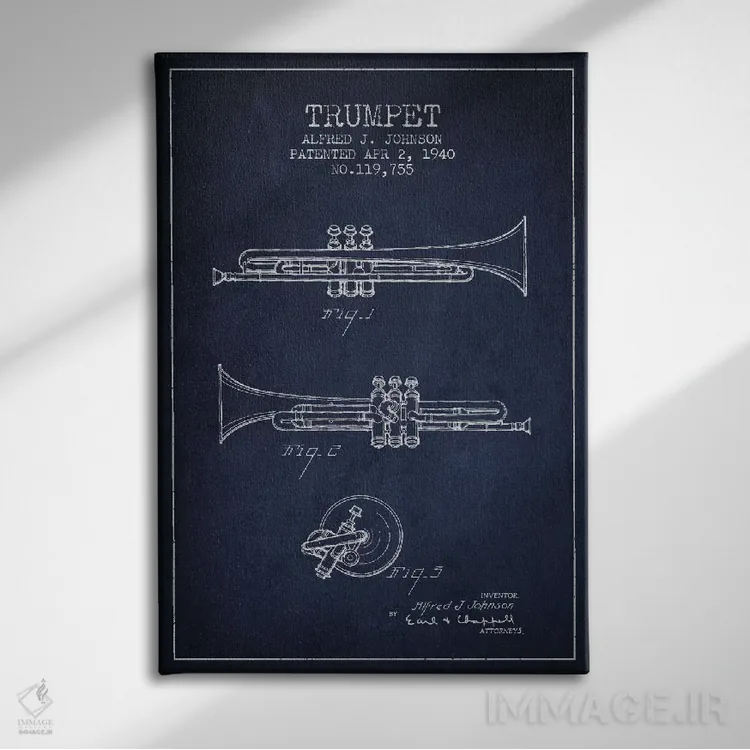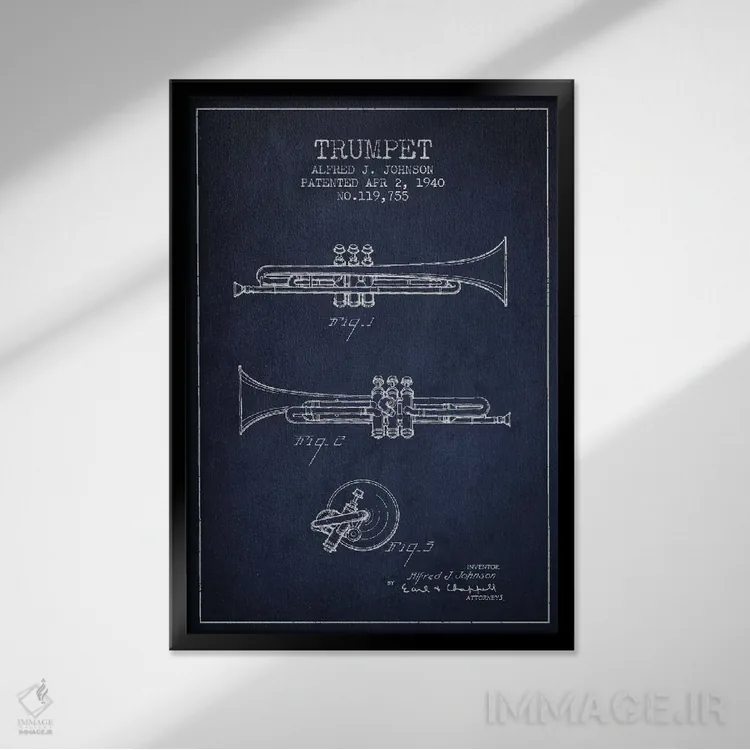 تابلو طرح ثبت اختراع ترومپت (آبی نفتی) اثر پیکسل کهنه (استودیو/نام هنری)