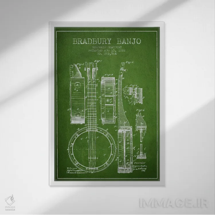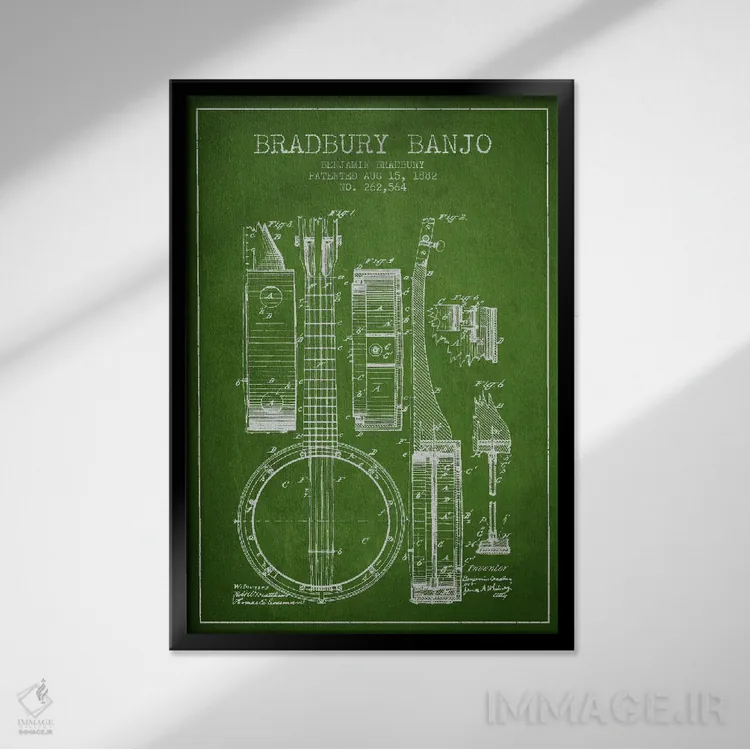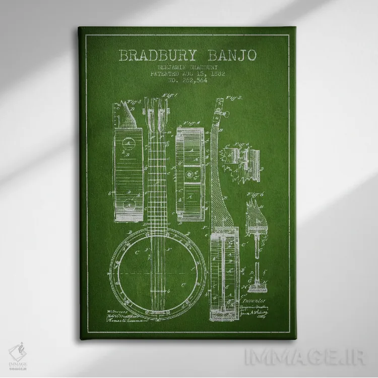 تابلو طرح ثبت اختراع بانجو (سبز) اثر پیکسل کهنه (استودیو/نام هنری)