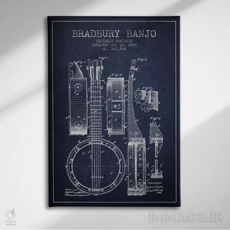 تابلو طرح ثبت اختراع بانجو (آبی نفتی) اثر پیکسل کهنه (استودیو/نام هنری)