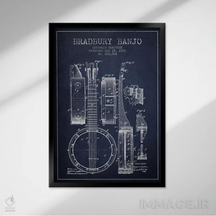 اگر دکور شما کلاسیک/رترو است، «طرح ثبت اختراع بانجو (آبی نفتی)» اثرِ «پیکسل کهنه (استودیو/نام هنری)» با سبک هنری کاملاًً مینشیند.