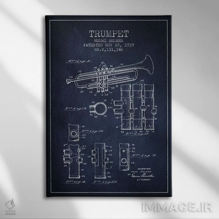 تابلو طرح ثبت اختراع ترومپت (آبی نفتی) اثر پیکسل کهنه (استودیو/نام هنری)