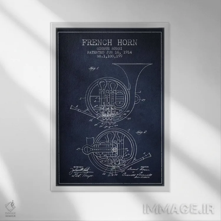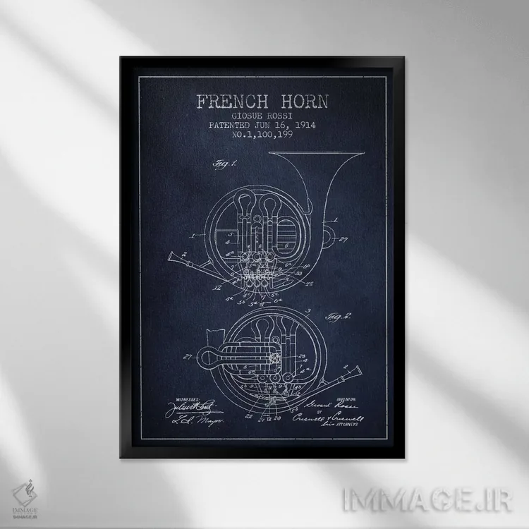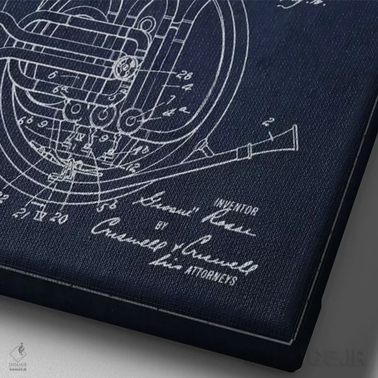 تابلو طرح ثبت اختراع هورن (آبی نفتی) (ساز بادی برنجی) اثر پیکسل کهنه (استودیو/نام هنری)