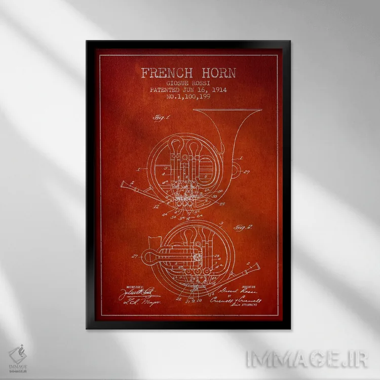 تابلو طرح ثبت اختراع هورن (قرمز) (ساز بادی برنجی) اثر پیکسل کهنه (استودیو/نام هنری)