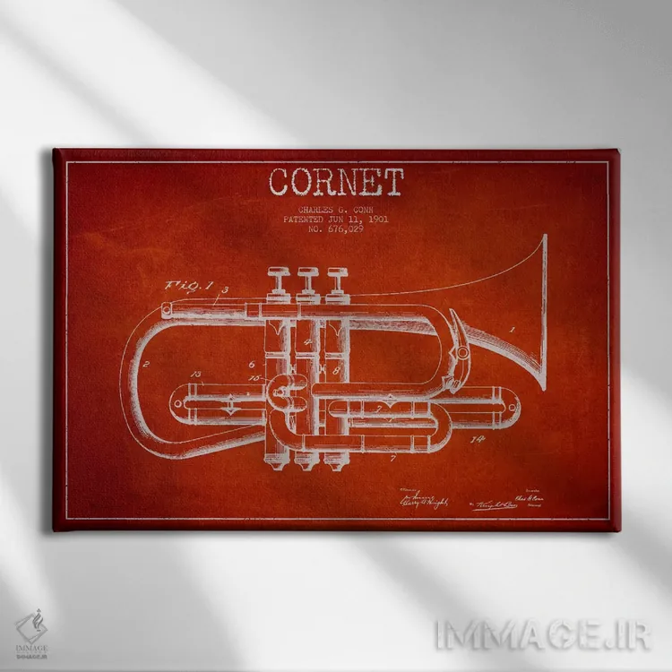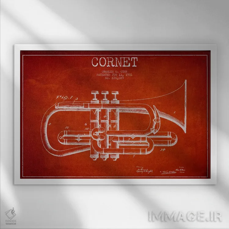تابلو طرح ثبت اختراع کورنت (قرمز) اثر پیکسل کهنه (استودیو/نام هنری) - نمای قاب‌دار سفید