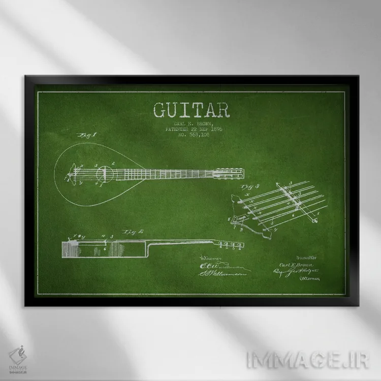 تابلو طرح ثبت اختراع گیتار (سبز) اثر پیکسل کهنه (استودیو/نام هنری)