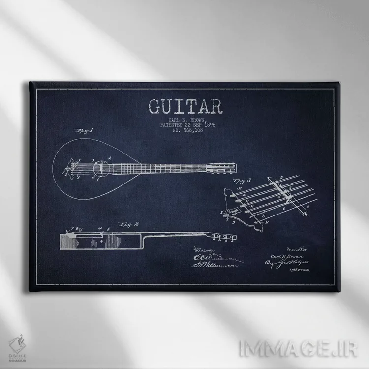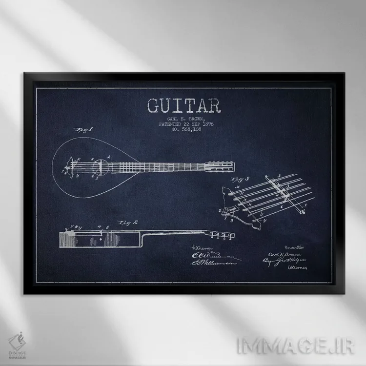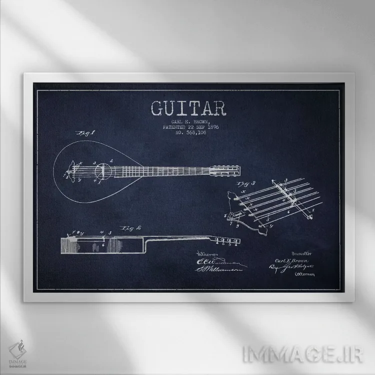 تابلو طرح ثبت اختراع گیتار (آبی نفتی) اثر پیکسل کهنه (استودیو/نام هنری)